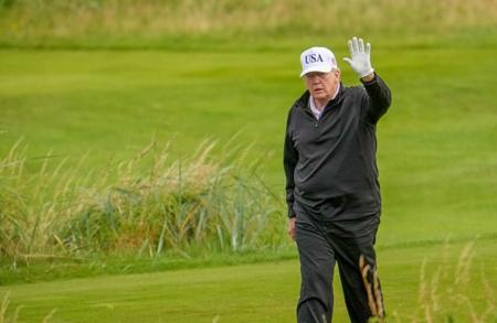 ظهر الرئيس الأمريكي دونالد ترامب يصافح المواطنين المتجمعين أثناء توجهه للعب الجولف ليكذب الإشاعات حول "أنه في حالة صحية خطرة ووفاته".